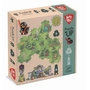 Un coffret avec de grandes pièces hexagonales en carton très solides et faciles à assembler en toute liberté, ainsi que 4 éléments de décors montés sur des pions en bois.