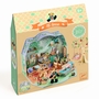 Le coffret comprend 1 petite maison, 2 planches en bois lasérisé, 1 palette de peintures sèches et 1 pinceau, 1 nappe de protection, 3 planches de carte prédécoupée illustrée, 3 planches de stickers (1 planche de stickers illustrés, 1 planche de petites gommettes transparentes, 1 planche de stickers double face en mousse), 4 fils chenille, 1 tête et des oreilles illustrées en bois, 1 bobine de fil, 1 planche de feutrine illustrée prédécoupée, 6 attaches parisiennes, 1 outil en carton pour fabriquer le mini personnage, 1 pince de précision, 1 tube de colle liquide à embout fin et 1 livret d'instructions détaillées.